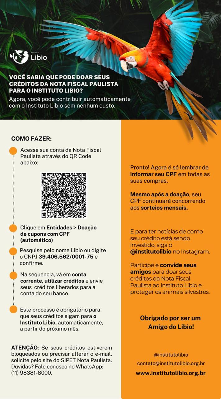 Por meio da Nota Fiscal Paulista, é possível doar automaticamente seus cupons fiscais e apoiar projetos de proteção à fauna e ações de educação e conscientização.